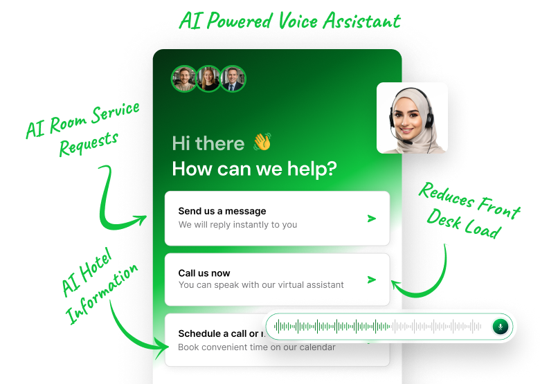An AI powered voice assistant that allows you to handle room service requests, hotel information and reduces front desk load with the power of automation. Our AI assistant offers easier accessibility options thus reducing manual workload on management