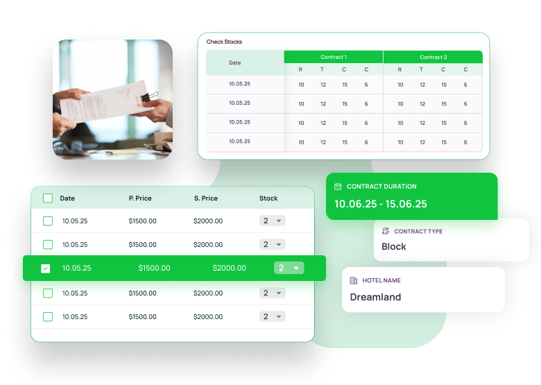 Gain full control over your Hotel inventory with real-time access over your tools, block dates, check contracts and shift allotments as per requirements. Make sure that your stock is used optimally without any errors, delays or overbookings