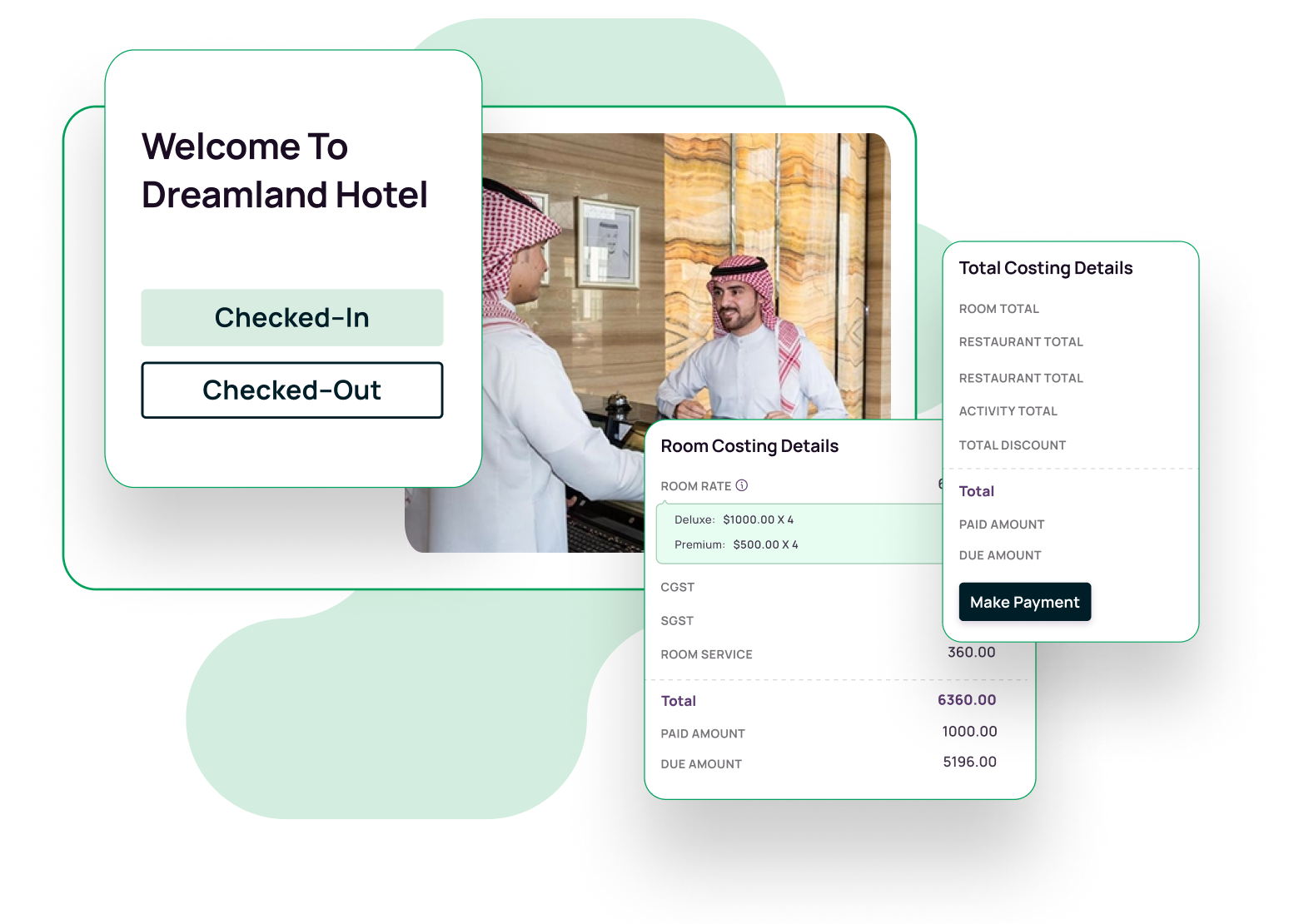 Automate and keep tabs on your Hotel’s financial operations with our integrated Accounting system. Get real-time visibility to your credit-debit values and your financial health to simplify your operations according to your requirements
